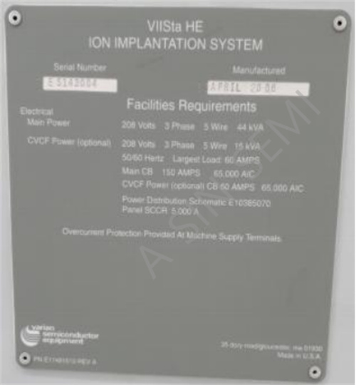 Maker :AMAT Model :VIISTA HE S/N :ES143004 Vintage :2008